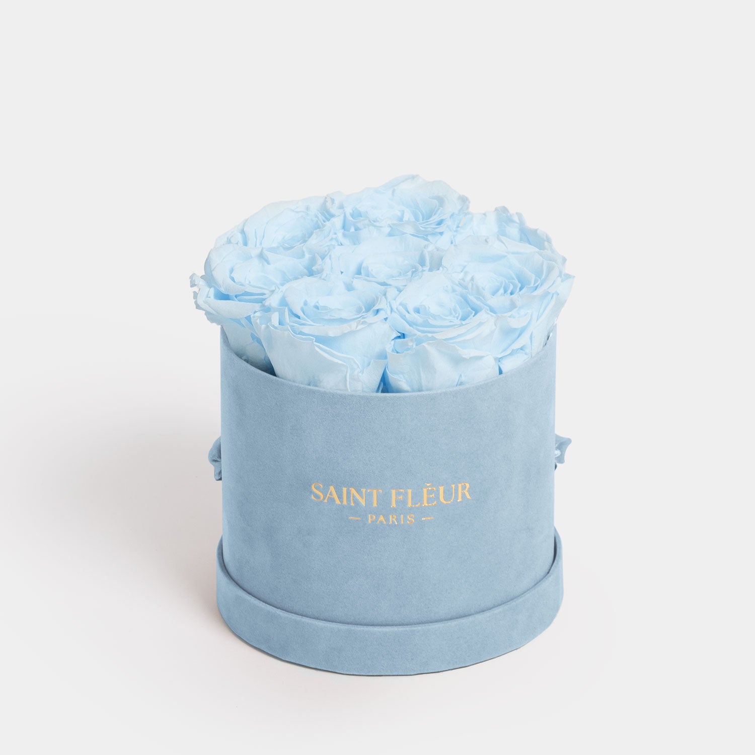 The 'Small Round' eternal rose arrangement by Saint Fleur captures luxury in its most compact form. It boasts seven lush, large-plus red roses, each preserved to perfection, and nestled in a timeless, round box. Designed for longevity, this piece serves as a daily reminder of beauty and grace.