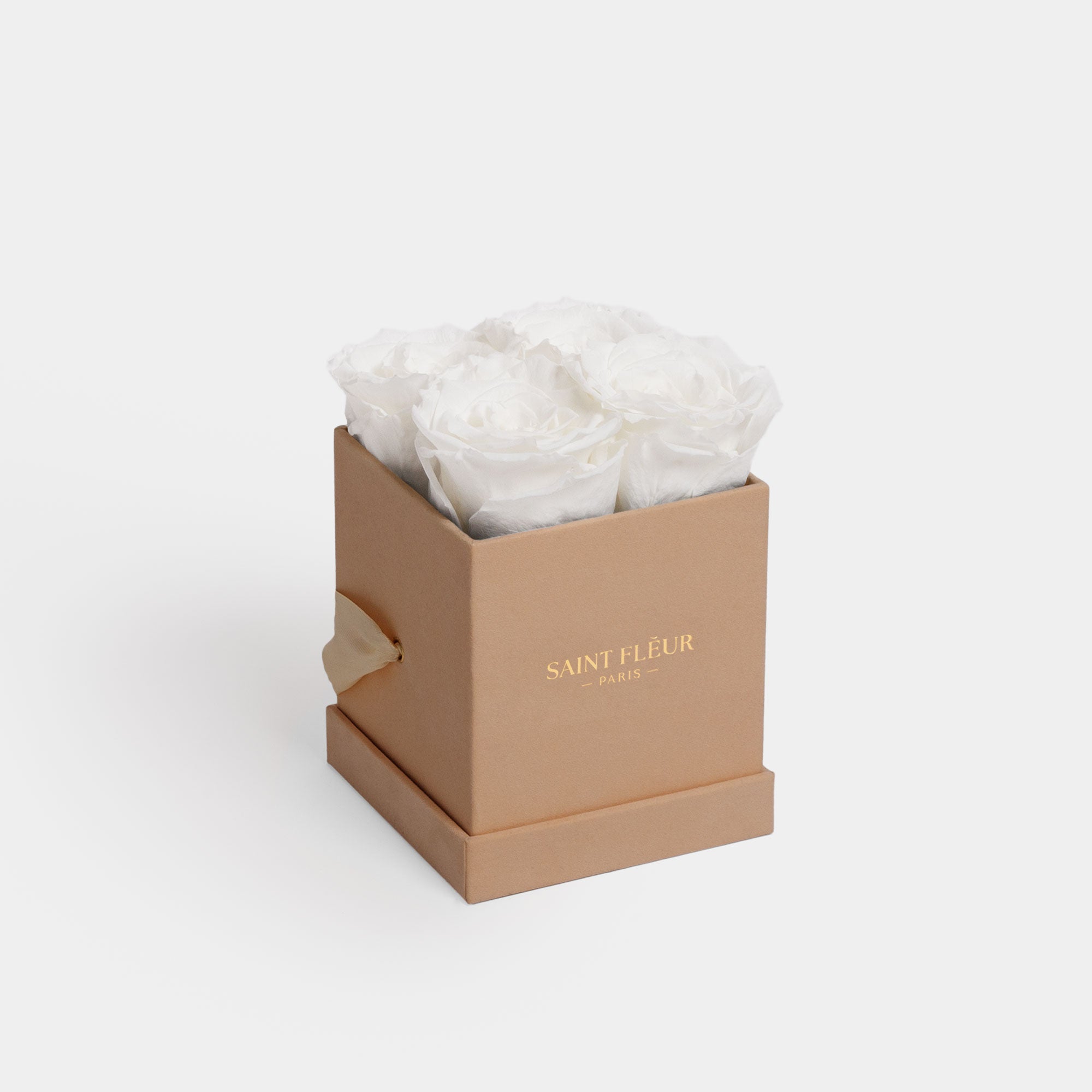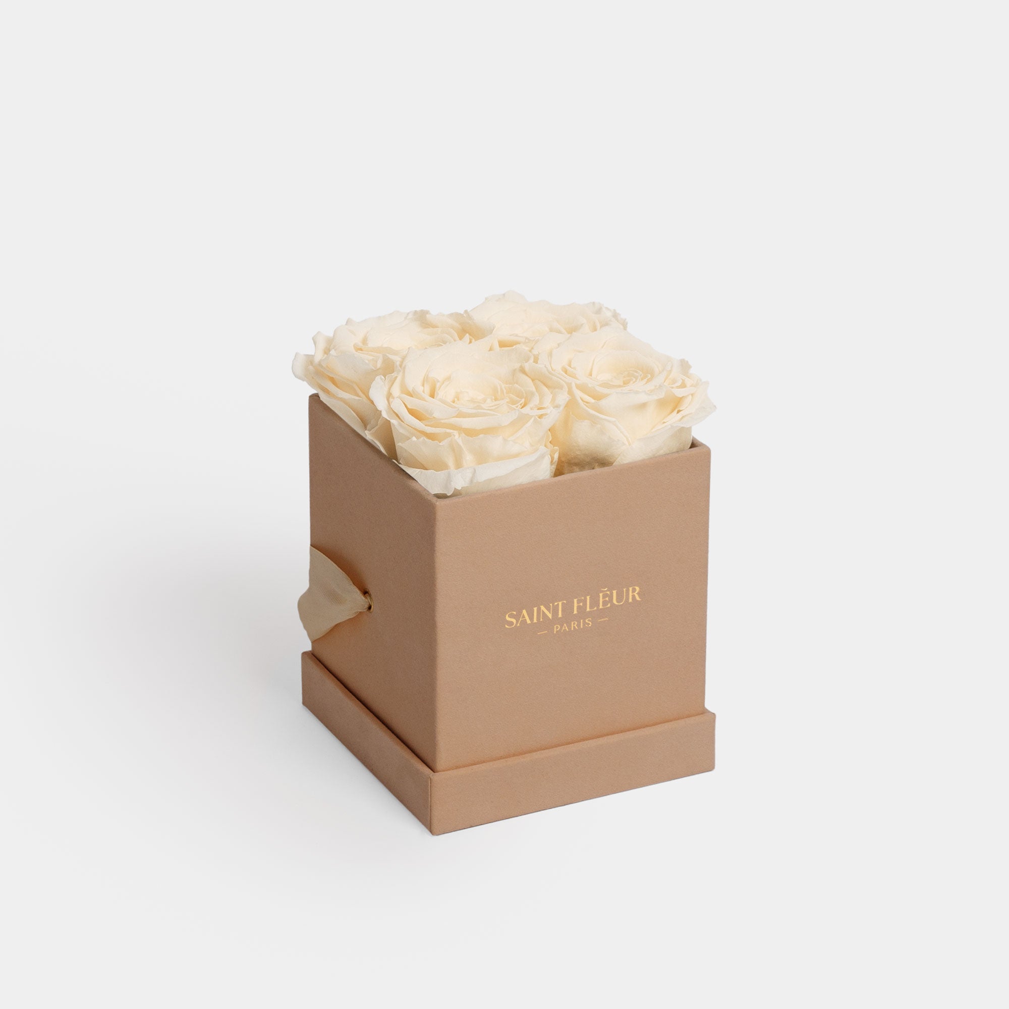 Step into a world of timeless elegance with Saint Fleur's "Small Square" eternal rose arrangement. Each of the four large roses is a testament to enduring beauty and grace, selected with the utmost care to ensure everlasting beauty. Presented in a classic 10 cm square box, this arrangement is a masterpiece of compact luxury, offering an intimate touch of sophistication to any space. It’s an enchanting, inviting piece that speaks volumes of your refined taste and appreciation for lasting beauty.